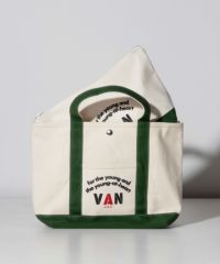 しっかりとした厚みのある6号帆布を使用したミニサイズのトートバッグです。 VAN定番のアーチロゴプリントを施したデザイン。内側には小物を収納できるポケット、口部分にはスナップボタンが付き機能性も抜群です。 持ち運びしやすいコンパクトサイズですが、見かけによらず大容量です。 使い込むほどに愛着が持てるVANの定番アイテム。女性の方も持ちやすい大きさなのでギフトにもおすすめです。