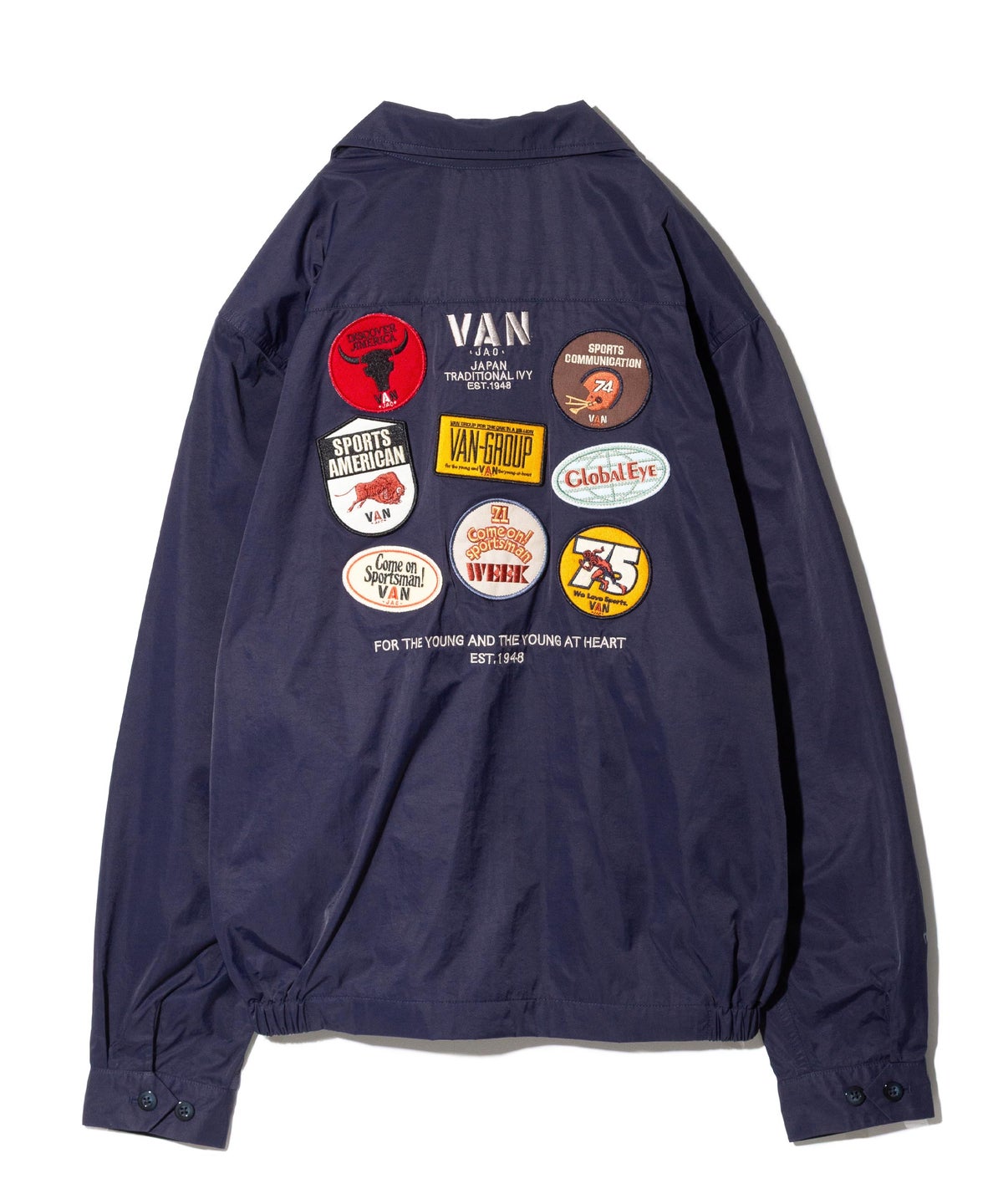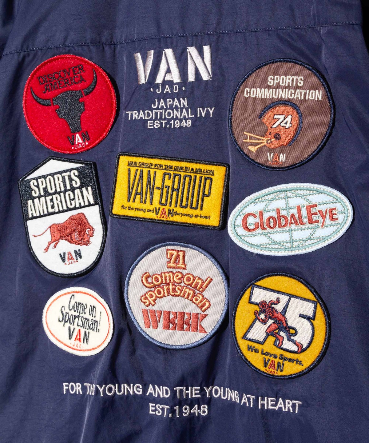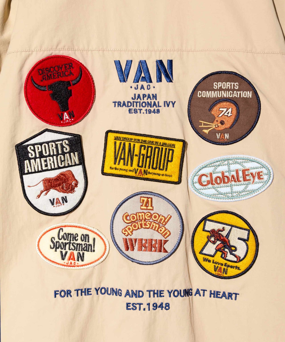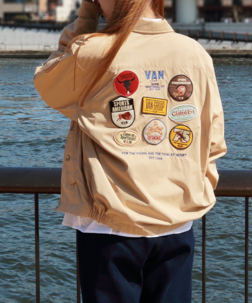 ■60年代後半から70年代中期のキャンペーングラフィックをワッペン刺繍で表現し、背中に配したブルゾン