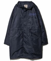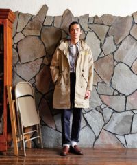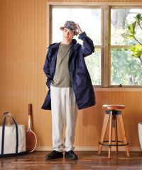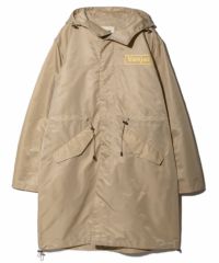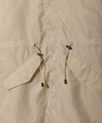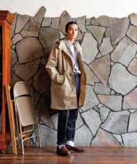 裏地を付けず1枚仕立ての軽い羽織りとして活躍するモッズコートをベースにしたフーデッドコート。