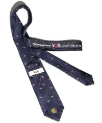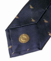 生地から縫製まで、すべて日本製の丁寧なつくりと上質な絹の生地にこだわったVANオリジナルネクタイ。知的な印象のネイビーをベースに鴨を刺繍にすることで立体感を出し、池に浮かんでいる様に見える愛らしいデザインに仕上げました。剣裏には丸VANロゴをワンポイントであしらいました。