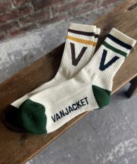 2本のラインとアルファベットロゴが足首からチラリと見えるとコーディネートのアクセントになるリブ編みソックス。
