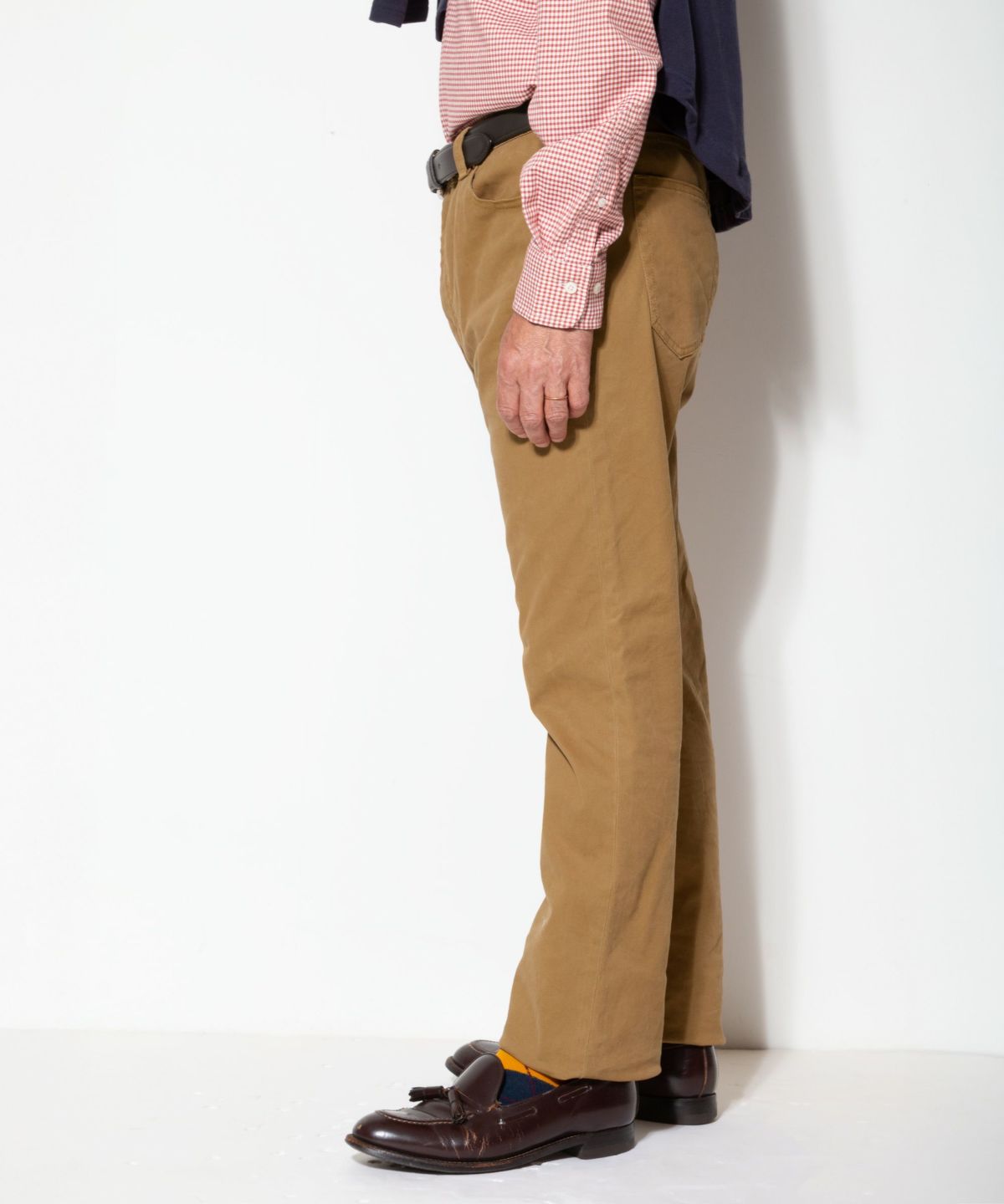 28 ネイビー:EN925504:ショートBDシャツ<カラーオックスストライプ> 33 キャメル:EN925506:ショートBDシャツ<カラーギンガムチェック> 33 キャメル:PC625513:フットボール長袖Tシャツ 33 キャメル:BL02253:キップレザーベルト 58 レンガ:EN925502:ショートBDシャツ<ドレスゴードンチェック>