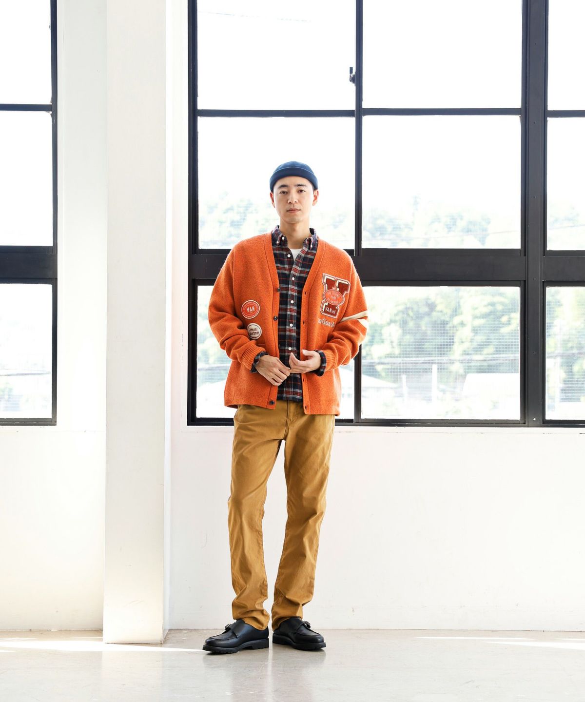 レタードカーディガン ショートBDシャツ<チェック><起毛> コットンストレッチパンツ<ネオベーシックモデル><セットアップ>