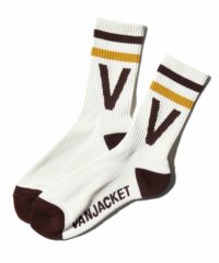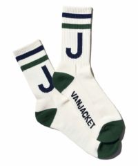 2本のラインとアルファベットロゴが足首からチラリと見えるとコーディネートのアクセントになるリブ編みソックス。