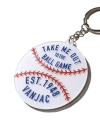 野球のボールを模ったアクリルキーホルダー。書かれている「Take Me Out to the Ball Game(私を野球に連れてって)」はメジャーリーグの愛唱歌のタイトルで7回裏の開始前にスタンドの観客らが立ち上がって合唱します。裏には丸VANロゴがプリントされています。鞄やお手持ちの小物に付けるなどワンポイントになるアイテムです。ちょっとしたプレゼントにも最適です。