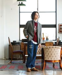 ショートBDシャツ<カーグラフィック> インターシャロゴセーター イージーデニムパンツ<ストレッチ>