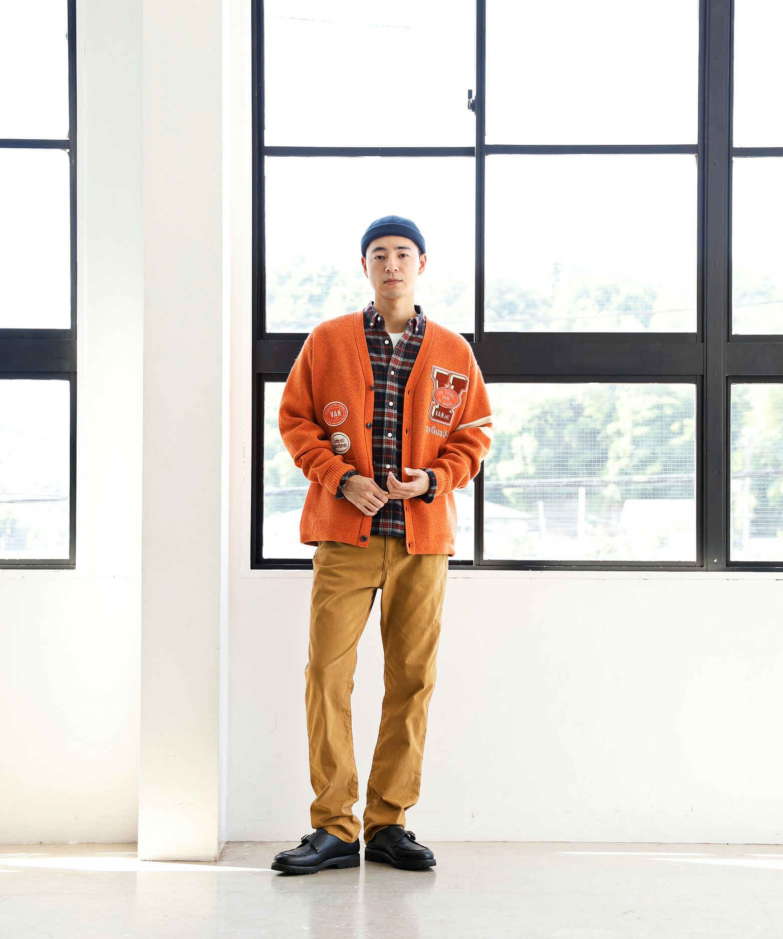 メンズ 【今季発売予定】定番裏毛 フィッシャーマンキャップ ショートBDシャツ<チェック><起毛> コットンストレッチパンツ<ネオベーシックモデル><セットアップ> レディース キャップ<Vエンブレム> 【今季発売予定】中綿マフラー BDシャツ<ロンドンストライプ>
