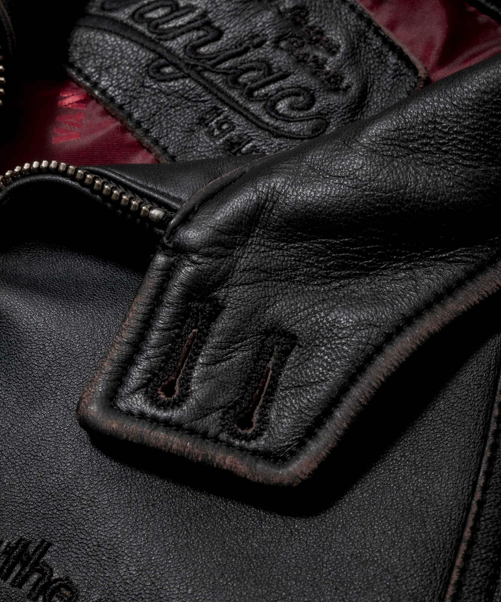 ■柔らかくしなやかなで、着た瞬間肌に馴染むラムレザー贅沢に使用