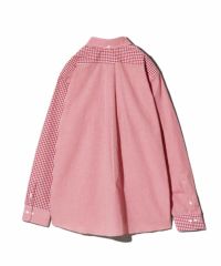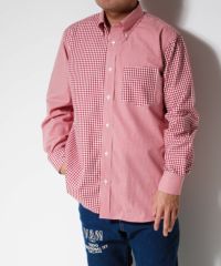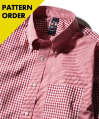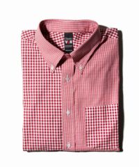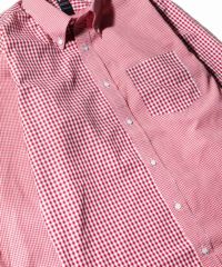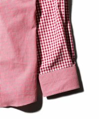 柄のサイズ感の違うギンガムチェック生地を2種類組み合わせたクレイジーパターンシャツです。鮮やかなレッドの色合いで1枚取り入れるだけで装いがグッと明るく仕上がります。もちろんネクタイとの合わせにもマッチするので通常のギンガムシャツとは一味変わった雰囲気に仕上がります。