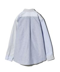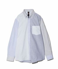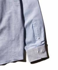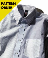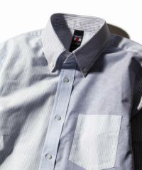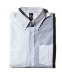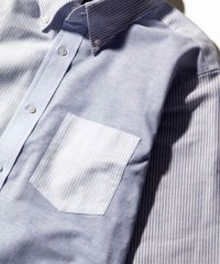 無地のオックスフォード生地2色とロンドンストライプ2色の4生地を組み合わせたクレイジーパターンシャツです。色味を合わせることで派手すぎず使いやすさを重視。チノパンはもちろん、デニムやネクタイ合わせにも使える遊び心をプラスしたオックスフォードシャツに仕上げました。