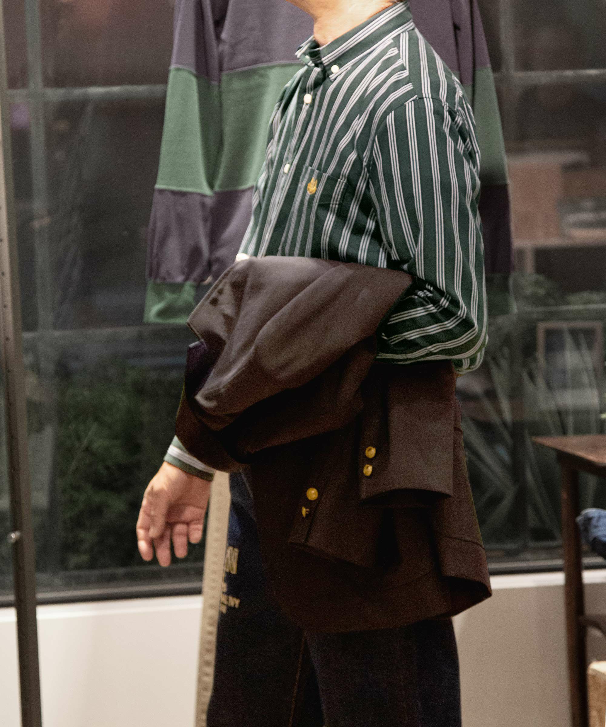 29 ネイビー×バーガンディ PH600005:バックロゴTシャツ ZC425501:カラーチノパンツ<ストレッチ> PW625504:【今季発売予定】レタードカーディガン 45 グリーン BW325504:【今季発売予定】段返りブレザー ZC425007:イージーデニムパンツ<ストレッチ>