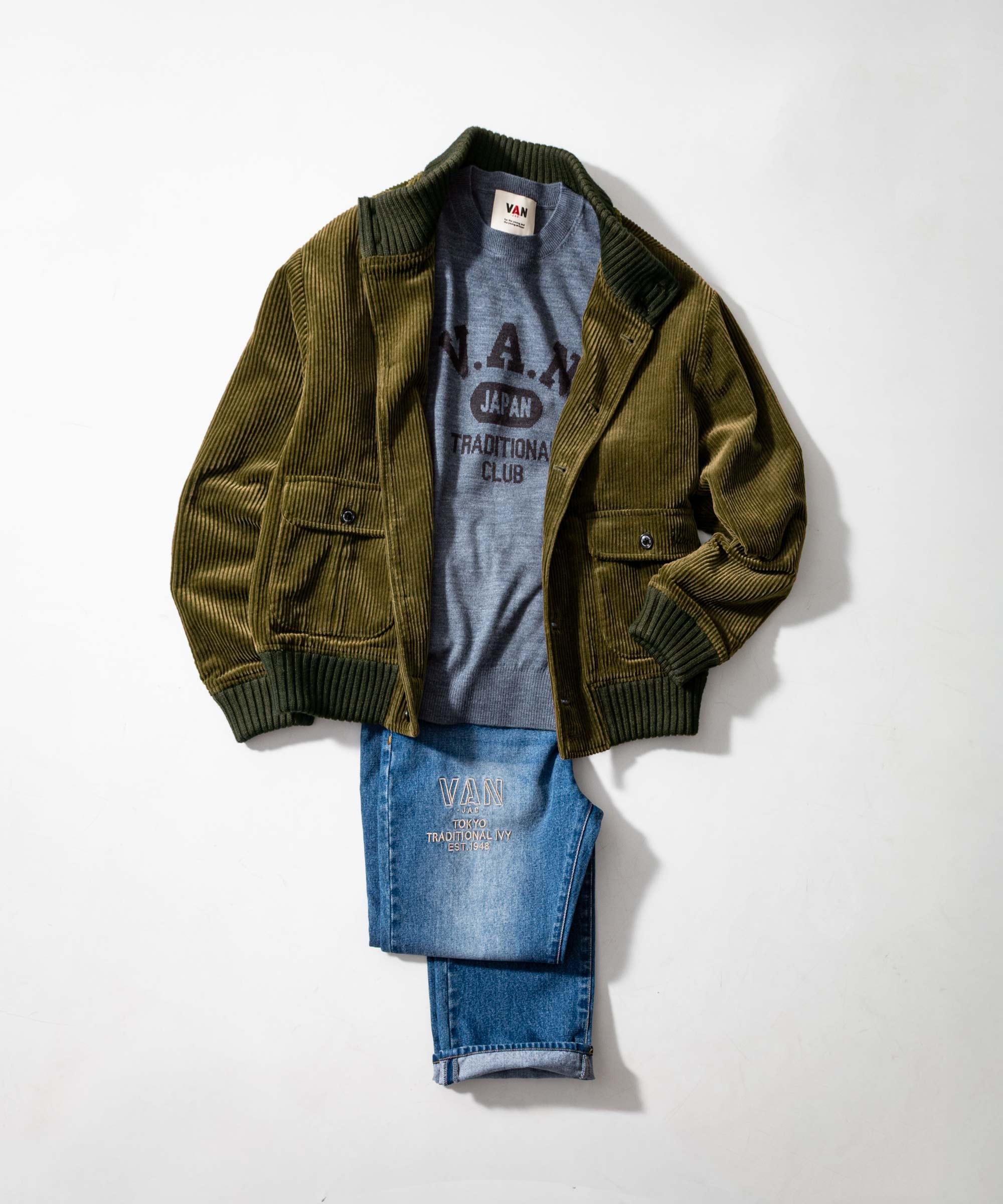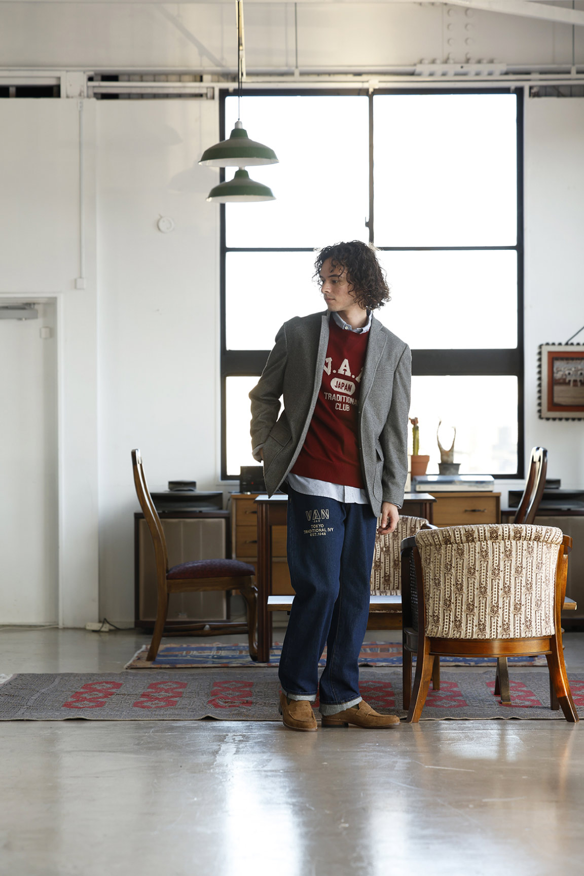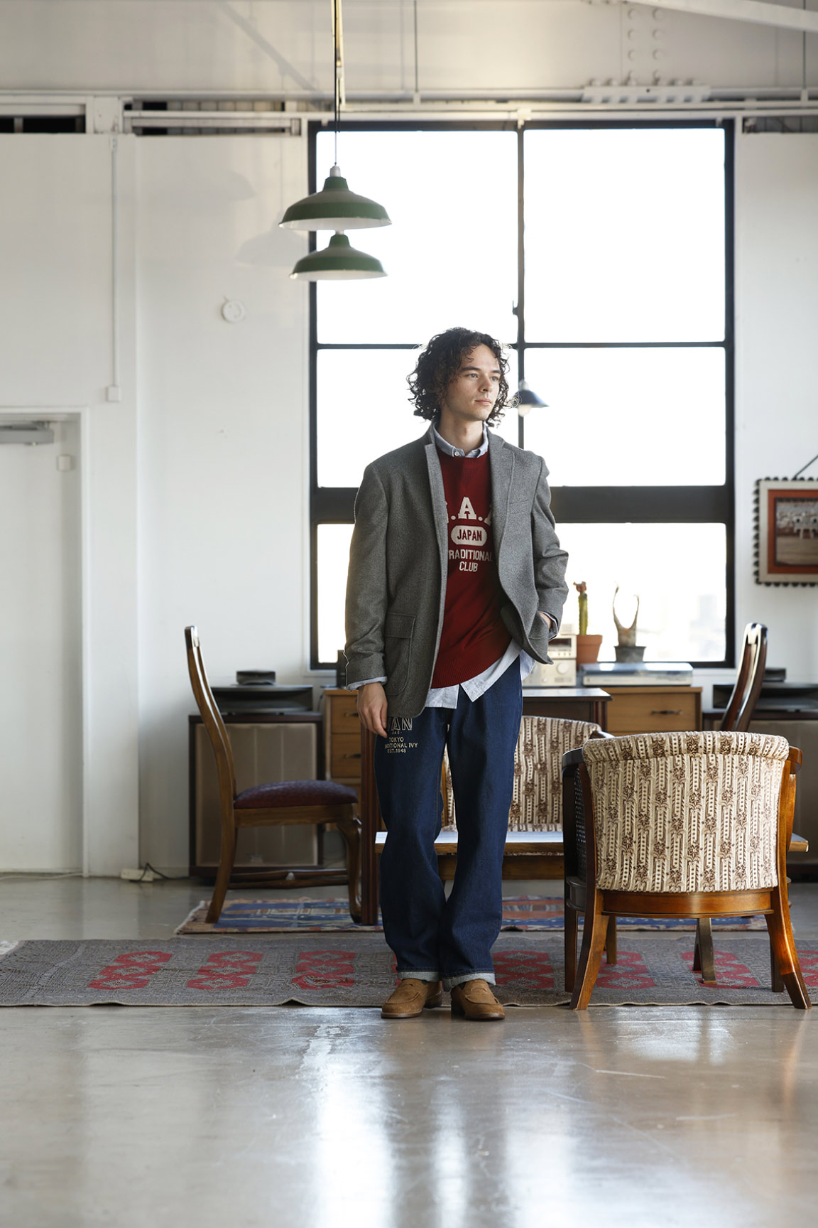 さりげないスエード調のエルボーパッチ(VJ刺繍入り)と、背面の首元にあしらわれた「TOKYO TRADITIONAL IVY」の刺繍が、ブランドのコンセプトを表現。シャツとのレイヤードも楽しめる品の良いデザインで、大人の日常に寄り添うトラッドスタイルをさりげなく格上げします。