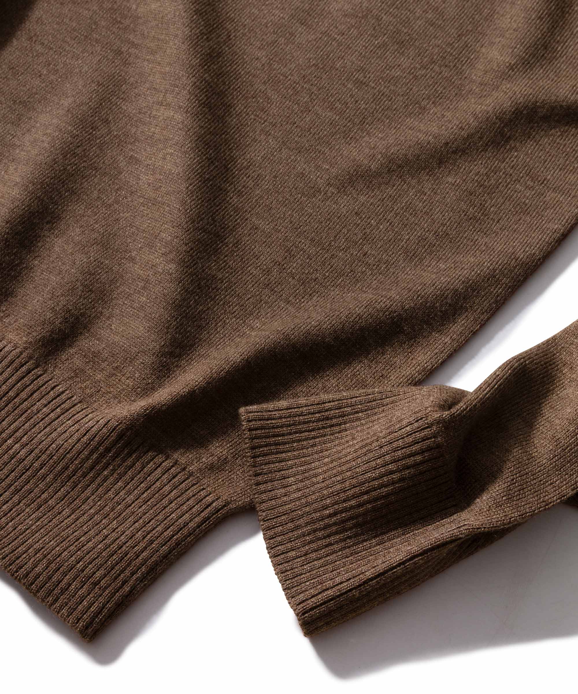 ハイゲージで編み立てたアクリルとウールの混紡素材を使用。薄手で軽やかなため、肌寒い季節のインナーとしても春先の単体使いにも最適です。