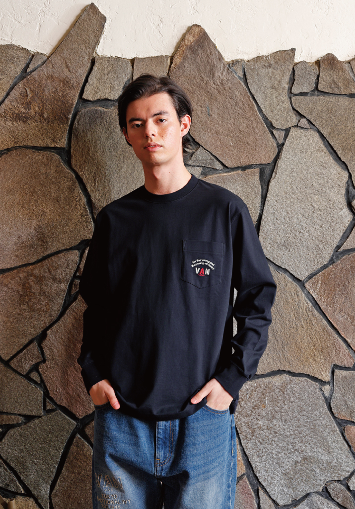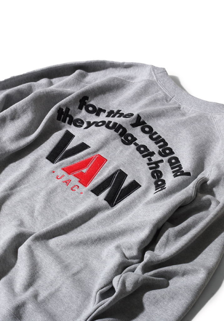 Trainer=訓練する人、の意。VANはこの言葉をスウエットシャツに用いました。50年代後半にはすでに存在していたというこの言葉は、1970年代にはスポーツウェアの代名詞としてすっかり市場に定着し、すでに広辞苑にも載っています。その頃から存在していたバックロゴのトレーナーは今の時代にもフィットした定番のアイテムです。