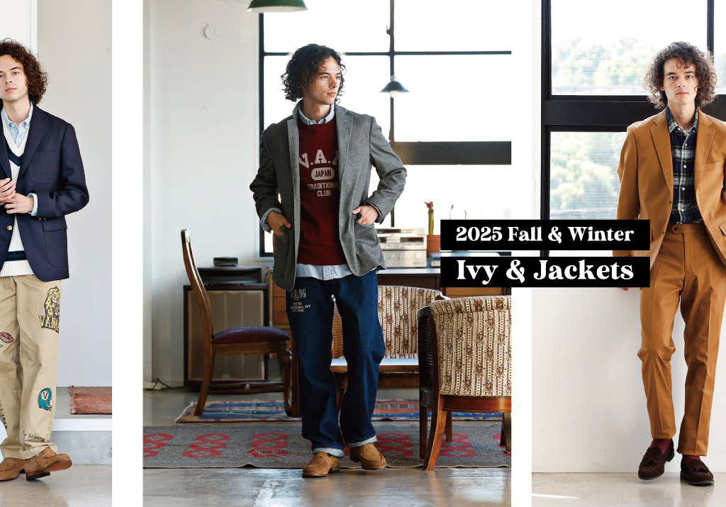 ヴァンならではのアイビーストライプジャケットやコットンツイルを用いたセットアップの
