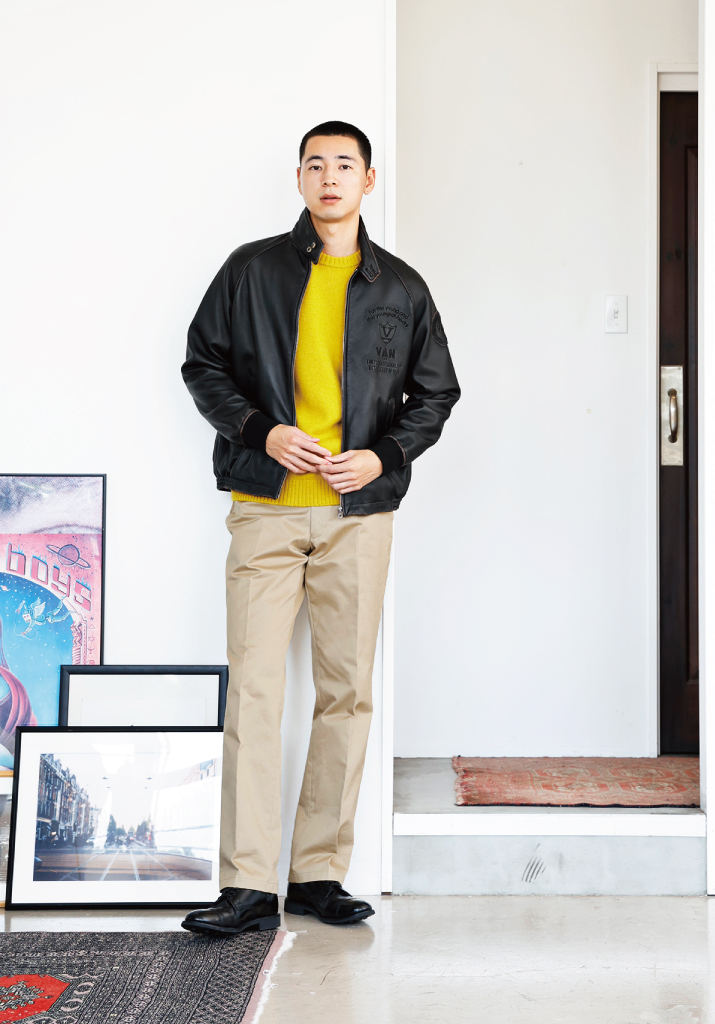 オールレザースウィングトップ ¥150,700(税込)シェットランドセーター ¥19,800(税込)リラックスフィットパンツ ¥24,200(税込)