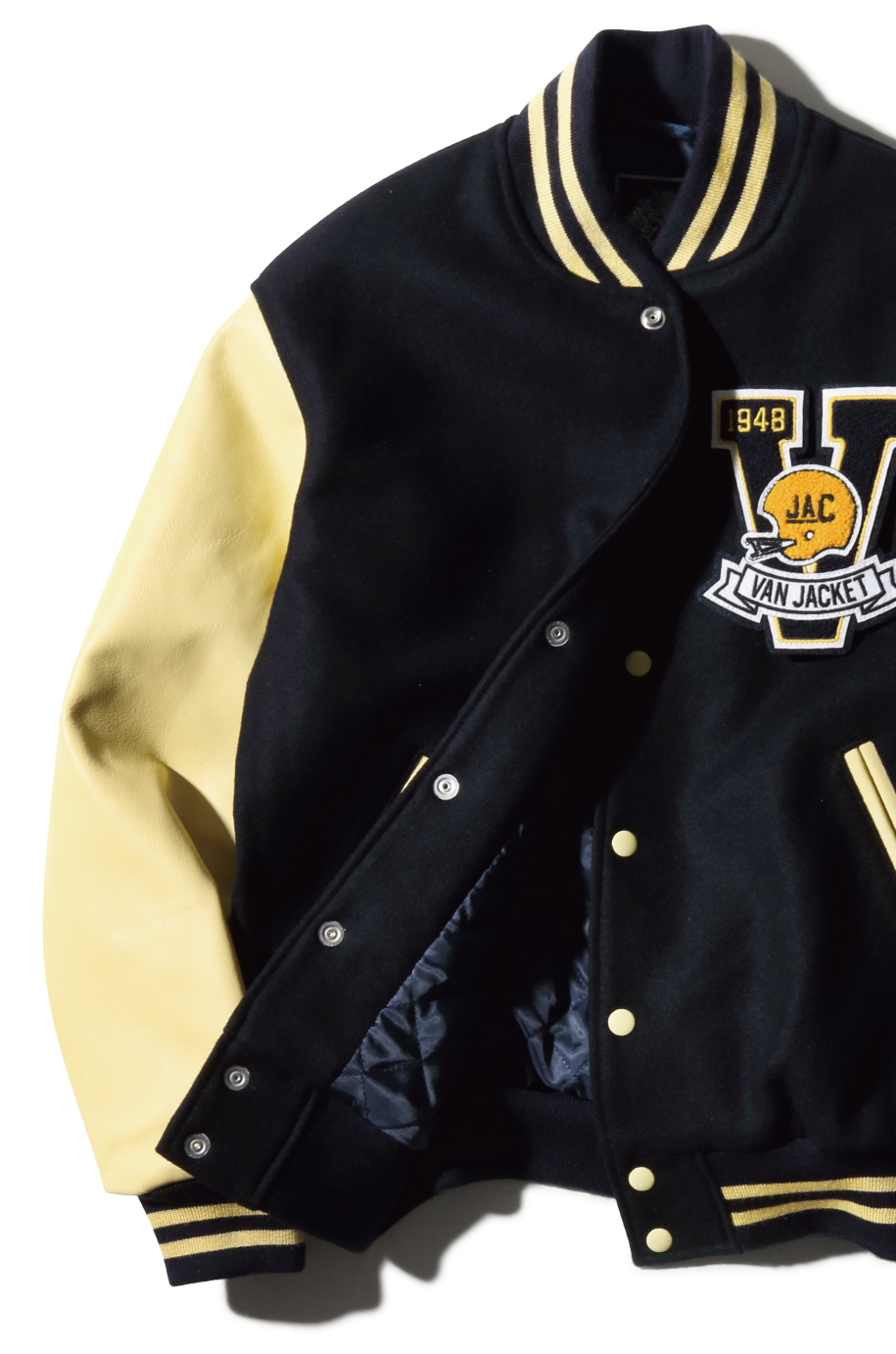毎シーズン登場のスタジアムジャンパー。冬のスタイルには欠かせないアイテムです。デニムやチノパンにも合わせやすく、袖とリブのイエローがアクセントに効いたスタジアムジャンパーは1枚羽織るだけでサマになるVAN定番商品です。内側には大きなマガジンポケットを配し、収納力も申し分ない。本体にはメルトンと牛革を使用し防寒もバッチリ。風を通しにくいのでインナーにニットなどを着込めば寒い冬でも暖かくご使用いただけます。