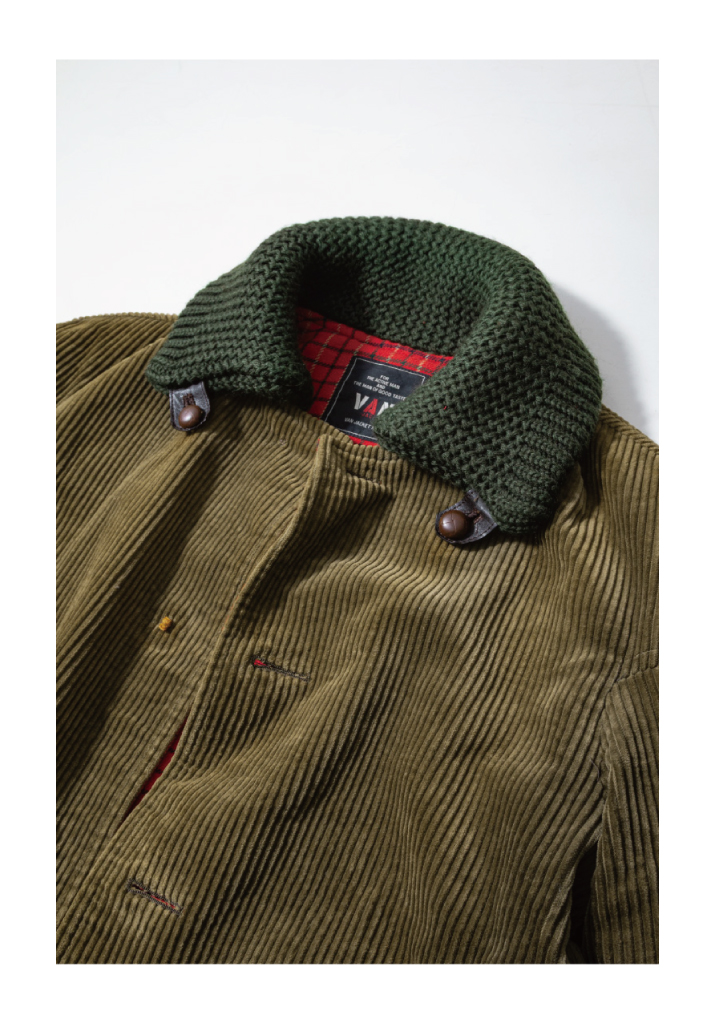 アイビーと共にライフスタイルに様々な提案をしていったVAN。その中でも大々的に提唱したのが「スポーツ」です。スペクテーター・ウエア(スポーツ観戦着)として親しまれたスポーティなコートが続々誕生。「スパニッシュカラーコート」はボタンダウン衿にタブを備え大きなリブ編みの衿が顔まわりを印象的に演出し、保温性の高いコーデュロイ生地で快適さも兼ね備えているので、スペクテーター・ウエアとしても、キャンパス(大学)にも使える強い味方でした。