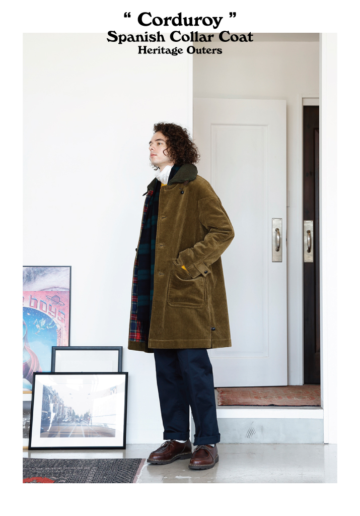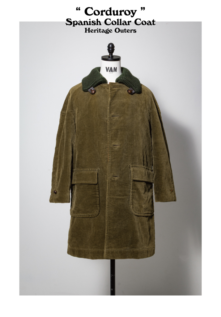 60年代後期のファッションの流れは大きく変動していたといわれています。この時代から多様化していった装い・生活の中、VANはトラディショナルについて再考しました。現代性をもったトラディショナル=ニュー・トラディショナルこそVANの表現したい製品イメージとし現代感覚を吸収したうえでの大きな「トラディショナルな流れ」それを製品に表現するのがVANの使命と考えました。当時は「男らしさ」を意識しアイビールックから徐々に無骨なアイテムが誕生し、その中のひとつが「スパニッシュカラーコート」です。