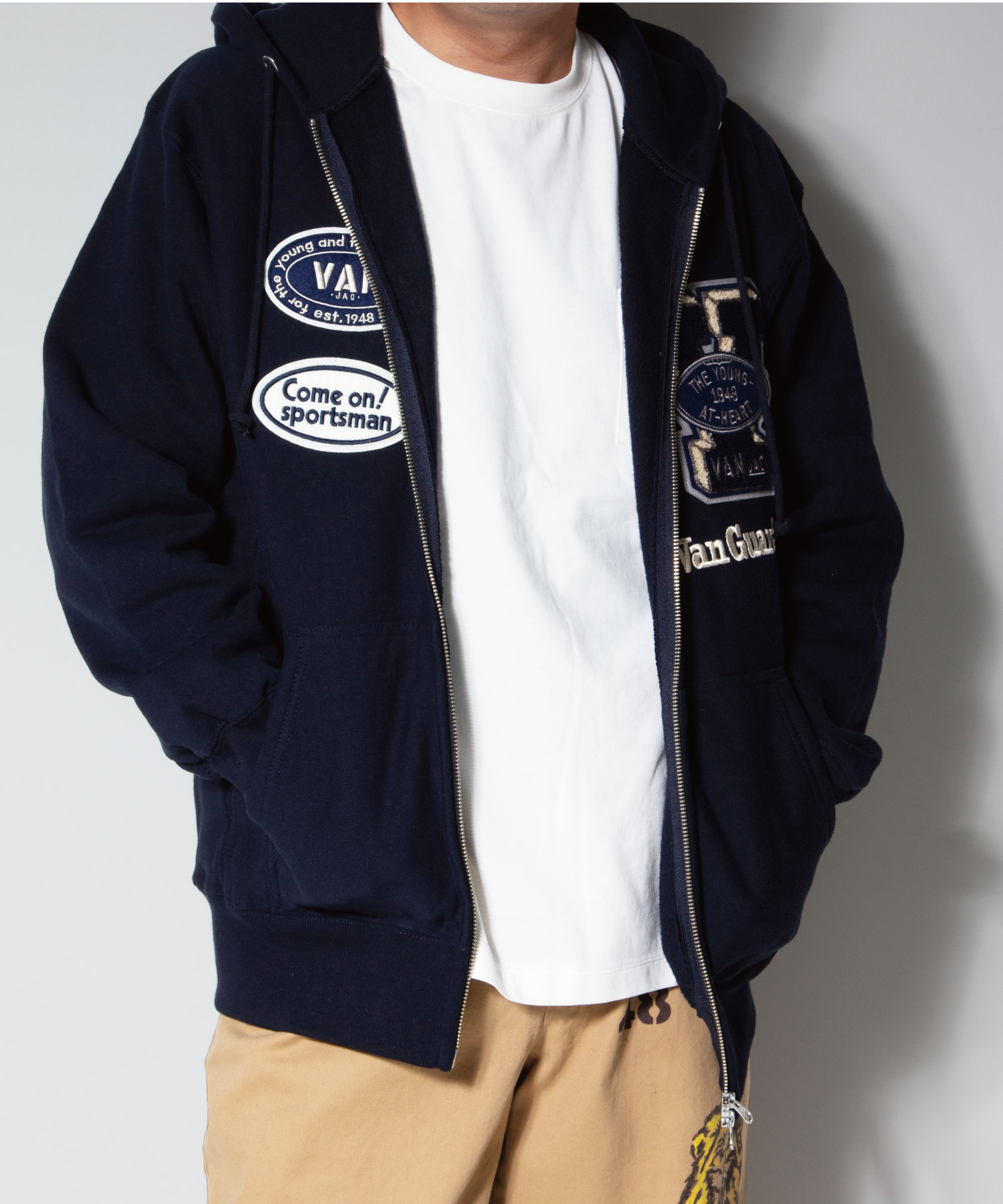 先述の“VAN GUARDS”や“Come on Sportsman!”など、ブランドの歴史を象徴するロゴを贅沢に散りばめ、
