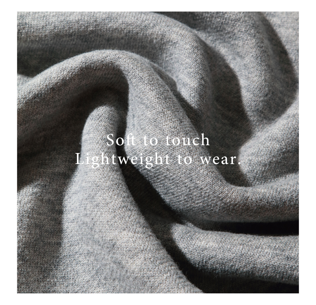 軽量で肌触りのよい裏毛素材を使用したトレーナーは、程よいストレッチ性で動きやすく、着ていることを忘れるほどのノンストレスな着心地を実現。