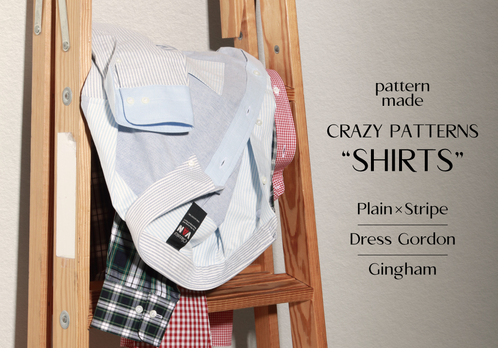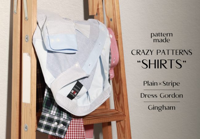 何種類かの生地や柄を組み合わせて作るクレイジーパターンのシャツがパターンメイド<期間限定>で登場。着丈や袖丈の補正も可能で自分の体型に合わせてサイズをお選びいただけます。今回は限定店舗にて店頭発売もございますので合わせてご検討くださいませ。