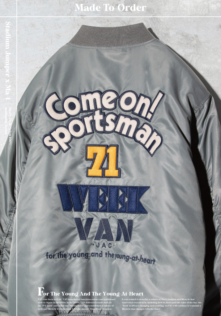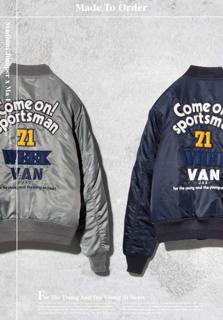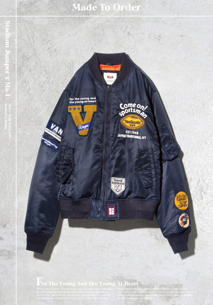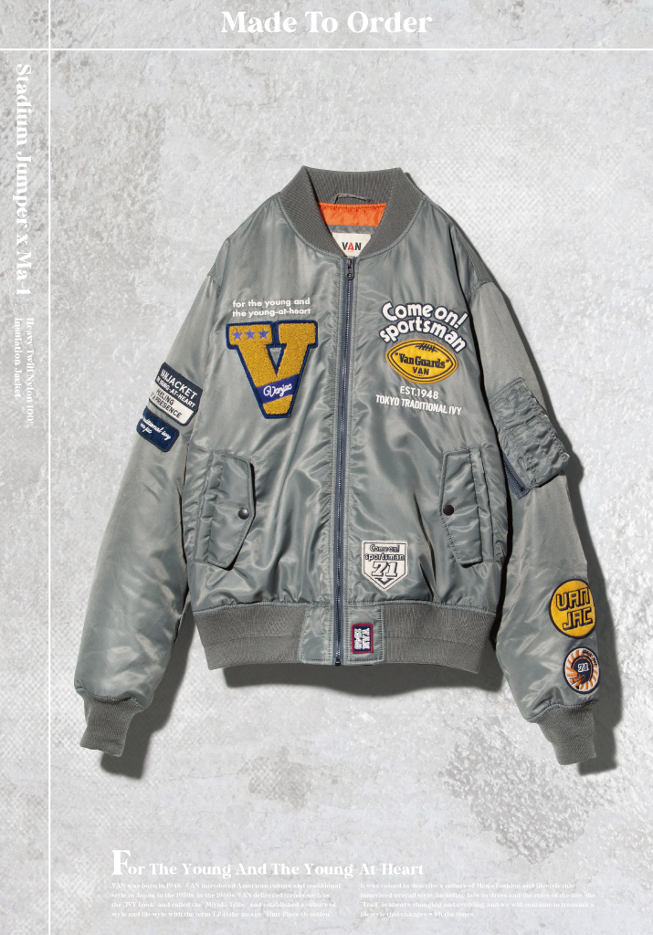 4月3日(金)から4月26日(日)まで、公式オンラインストア、VANSHOP各店にて毎年好評のプレミアムシリーズ第一弾となる、スタジアムMA-1<プレミアム>の受注会を開催いたします。