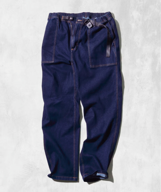 デニムのような味わい深い風合いを持ちながらも、やわらかく伸縮性に優れ、日常に心地よく馴染む着心地に仕上げました。決して主張しすぎないのに、どこか印象に残る佇まい。