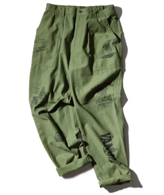 動きのあるプリントパンツがさりげなく個性を添え、コーディネートに心地よいリズムをプラス。やや厚みのある天竺素材を使用し、一枚でも安心感のある着心地に仕上げました。