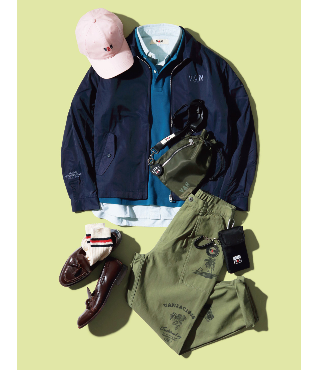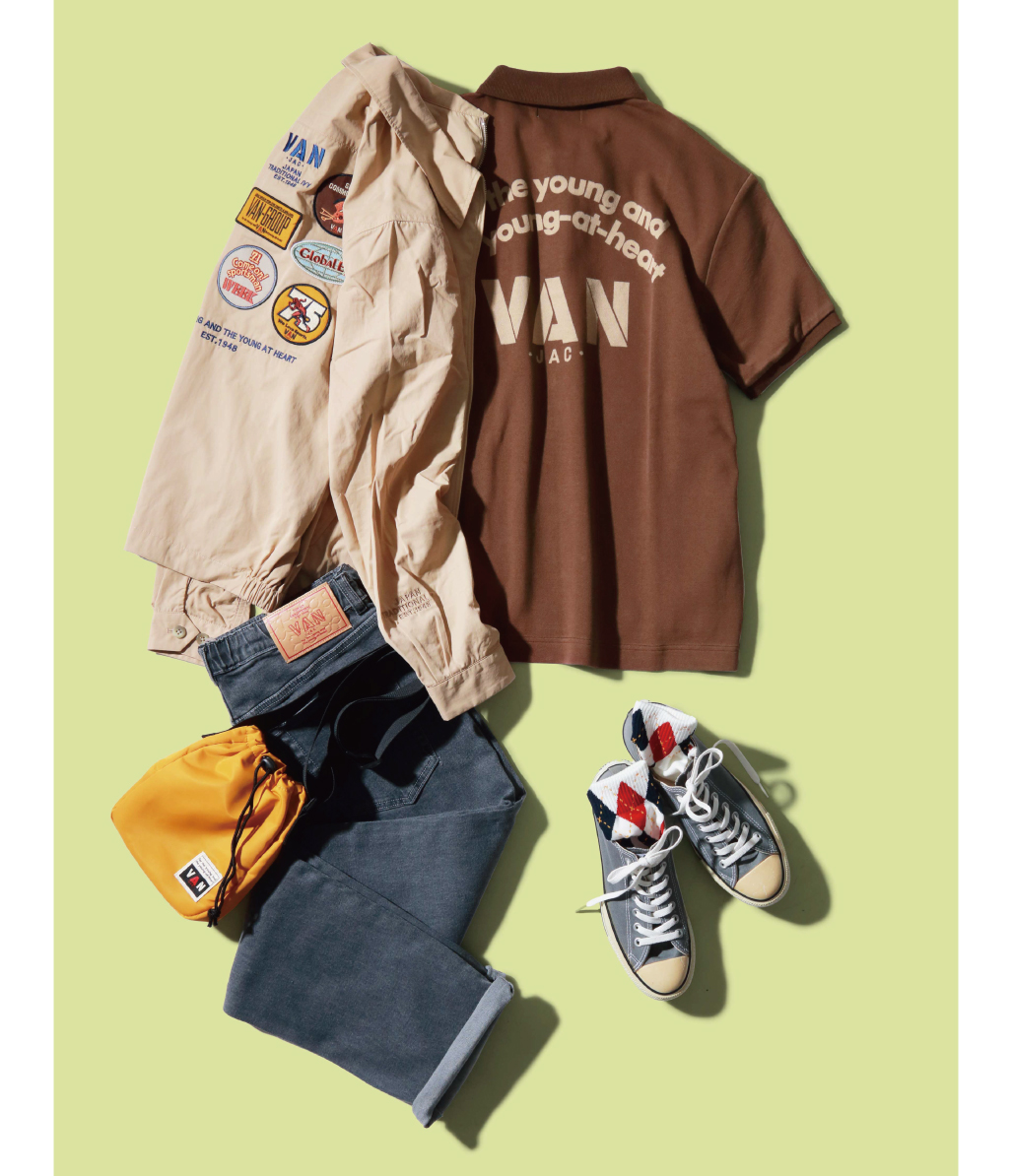 スポーティーな印象になりがちなアイテムを、VANらしいワッペンとこだわりのサイジングでトラッドに仕上げました。