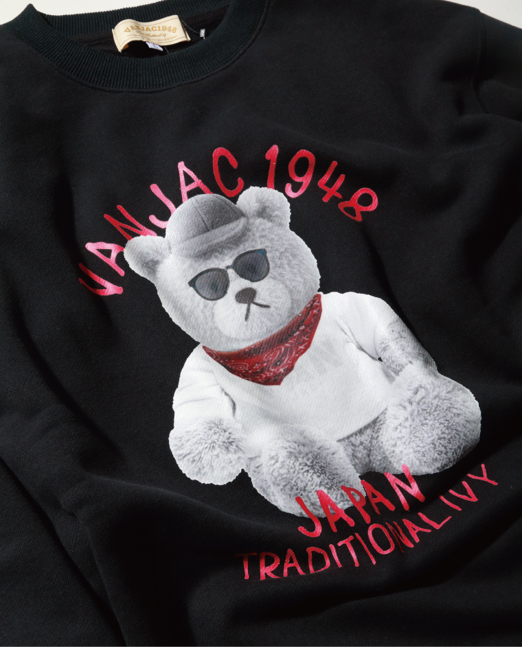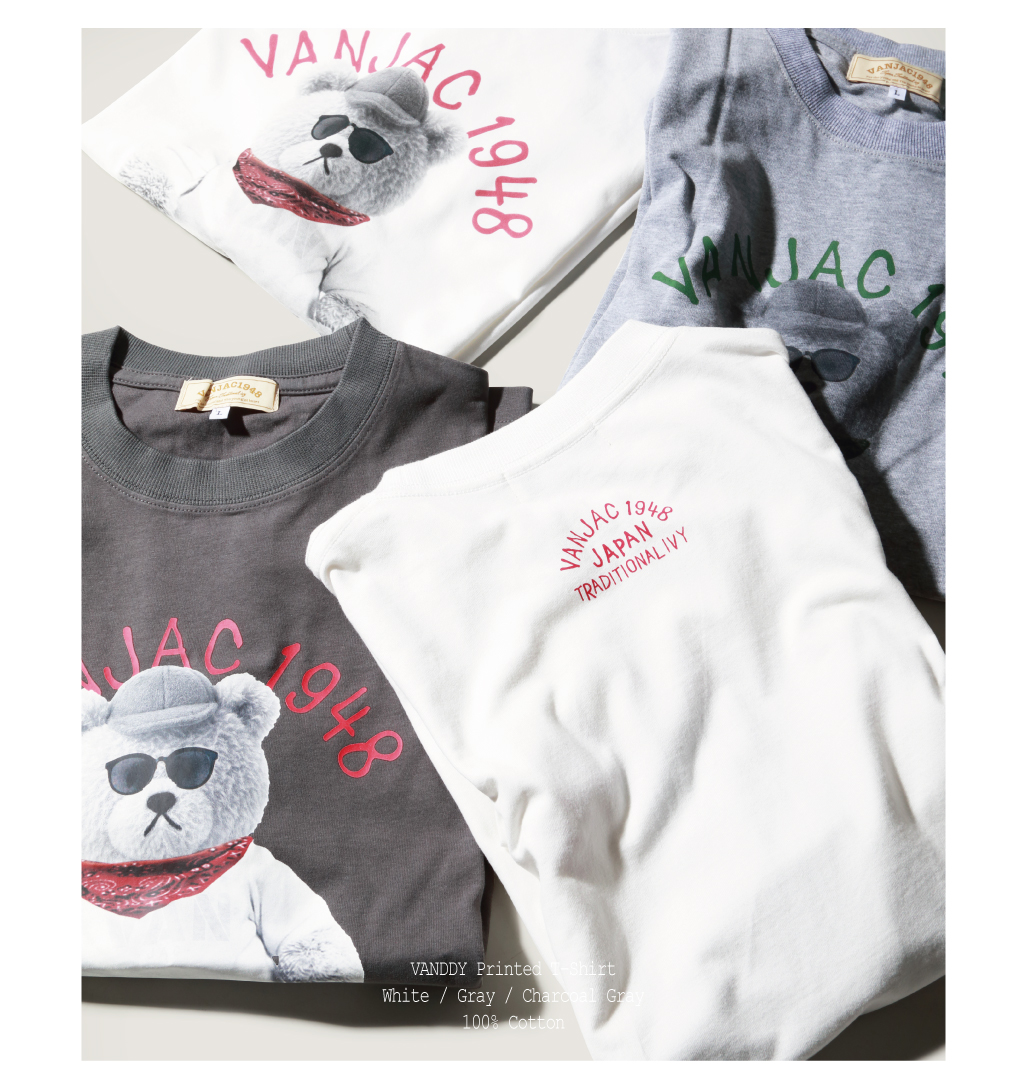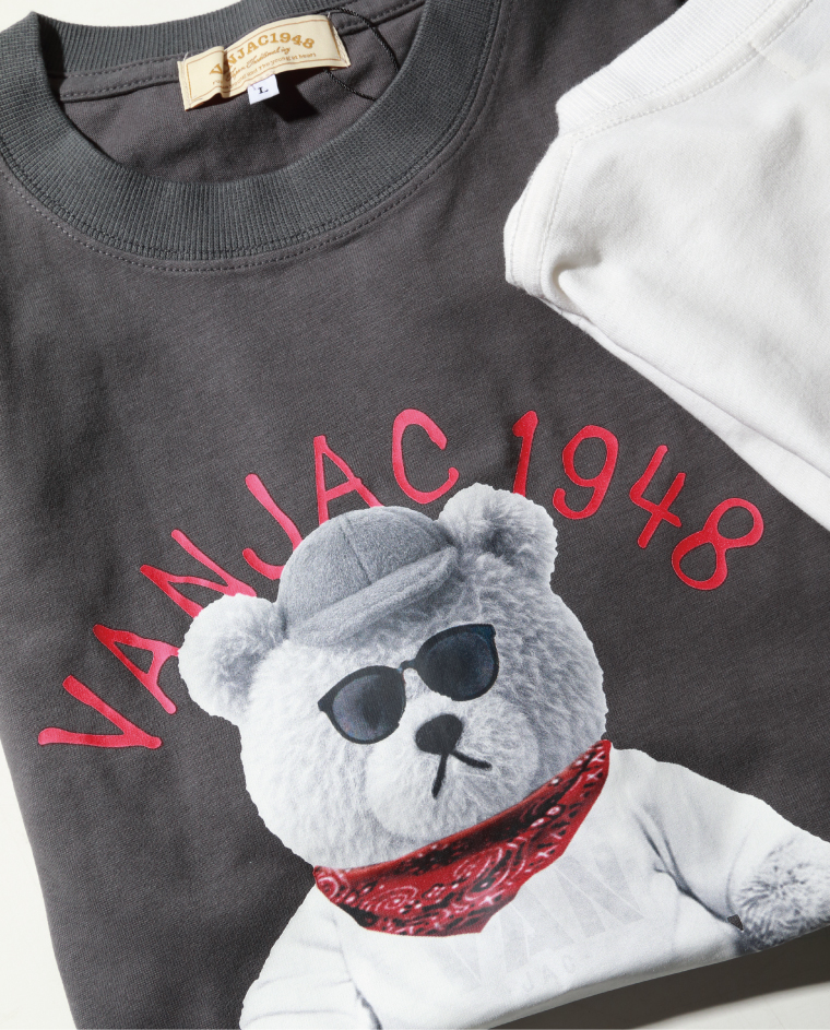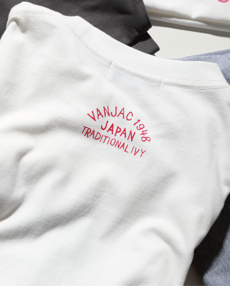 天竺素材にカーボンブラシ加工を施し、微細な起毛感が心地よい風合いに仕上げた一着。やわらかな肌触りとほどよい表情が魅力です。フロントには今期から登場したVANDDYくんを大胆にプリントし、存在感のあるデザインに。バックネックにはロゴを配し、さりげないアクセントをプラスしました。さらに、両脇スリットにはプリントカラーと同色のロゴ刺繍を施し、細部まで抜かりない仕上がりに。一枚で着ても、レイヤードしても映えるアイテムです。