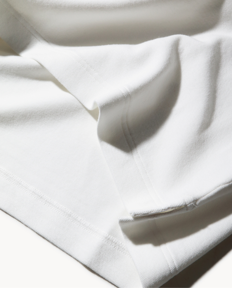 鹿の子と天竺を表裏で組み合わせた、表情豊かなダブルフェイス素材を使用。異なる編み地が生み出す奥行きのある風合いと、快適な着心地を両立した一着です。裏面はやさしい肌当たりと高い吸水性を備え、表面は汗を蒸発させやすい通気性の良さが特徴。デイリーに心地よく着られる仕上がりです。胸元には人気のVANDDYくんをワンポイント刺繍でさりげなくあしらい、上品なアクセントをプラス。さらに、前後差2.5cmの着丈設計により、すっきりとしたバランスの良いシルエットを演出します。シンプルながらも素材感とディテールが際立つ、着回し力の高いアイテムです。