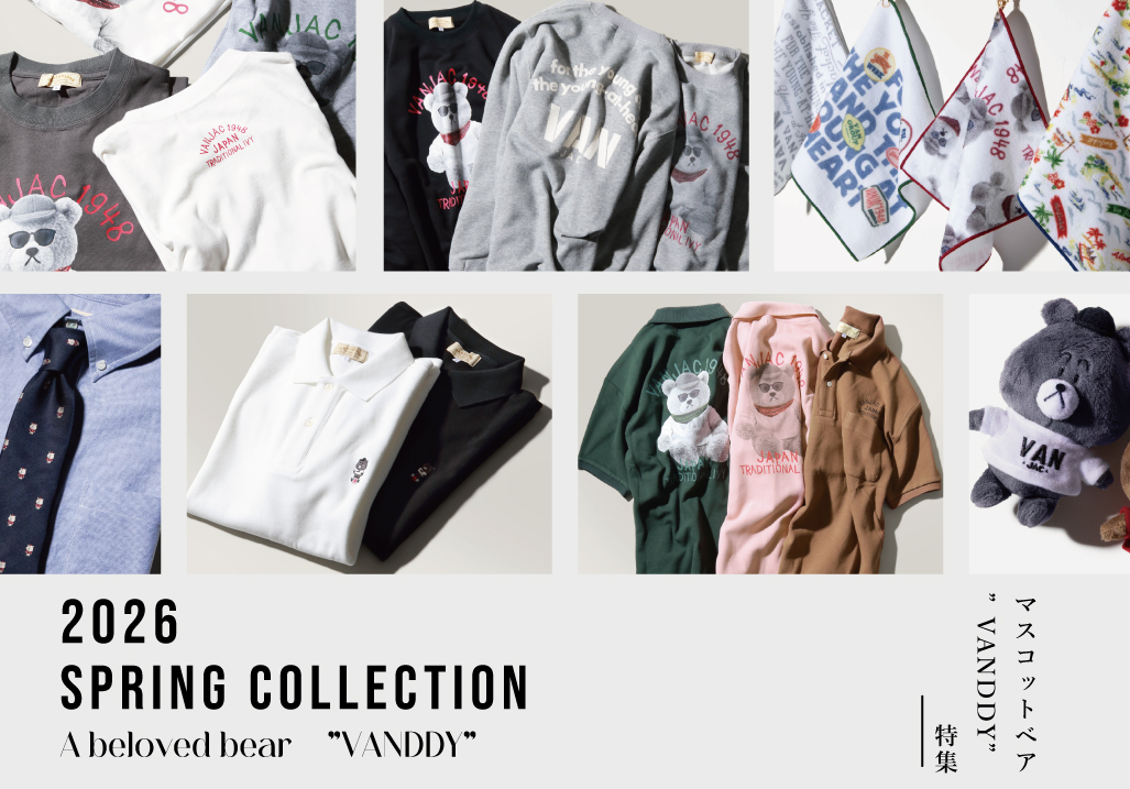 風合い柔らかなポロシャツを主役に、Tシャツやハンカチ、マスコットキーホルダーまで。親しみのあるVANDDYモチーフが勢揃いしました。中でも注目は、今季新たに登場したポロシャツ2型。やさしい肌触りと快適な着心地にこだわりながら、大胆にあしらったバックロゴや、胸元にあしらったワンポイントVANDDY刺繍がさりげないアクセントに。デイリーに取り入れやすく、一枚でもサマになる仕上がりです。さらに、スタイリングの幅を広げるTシャツや、日常に遊び心を添える小物類もラインナップ。身につけるたびに気分が上がる、VANDDYの魅力をぜひお楽しみください。