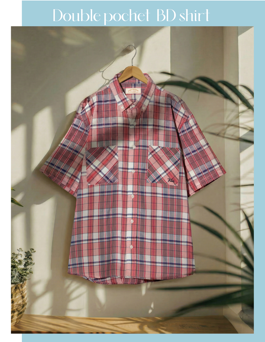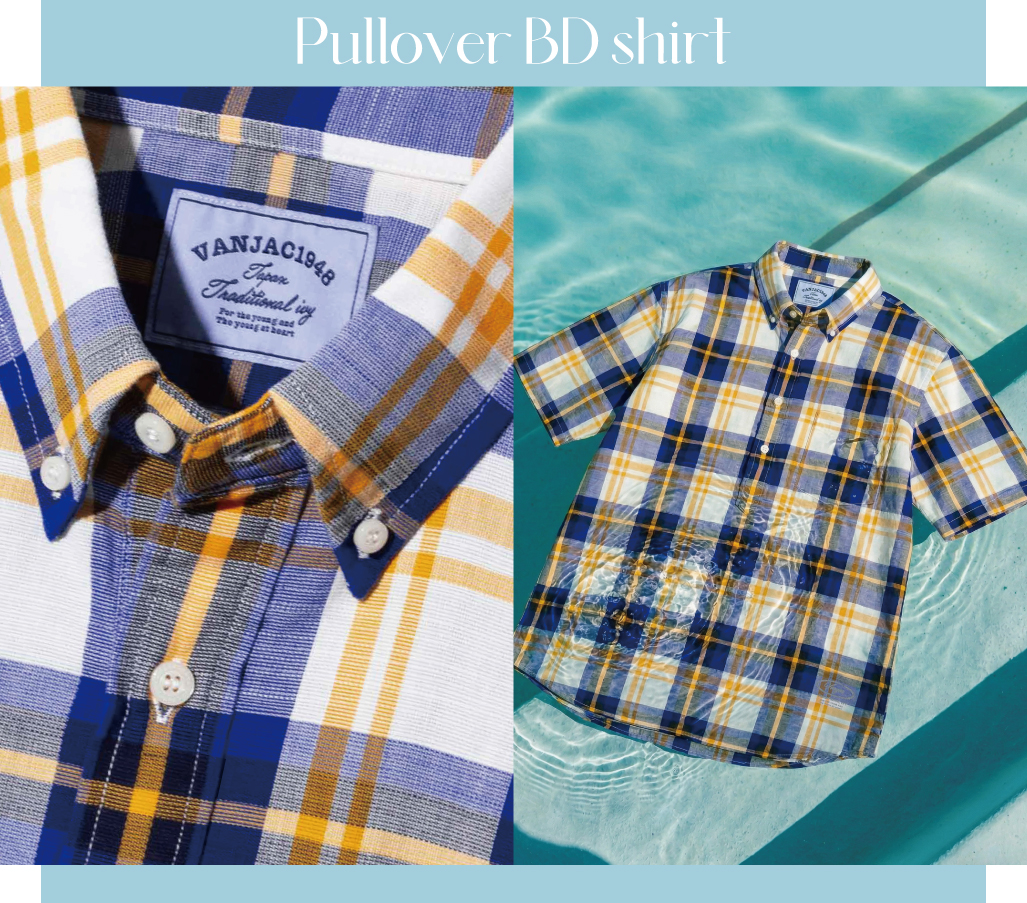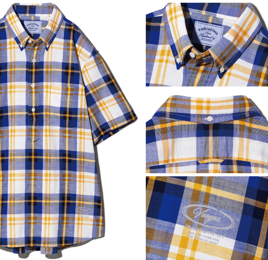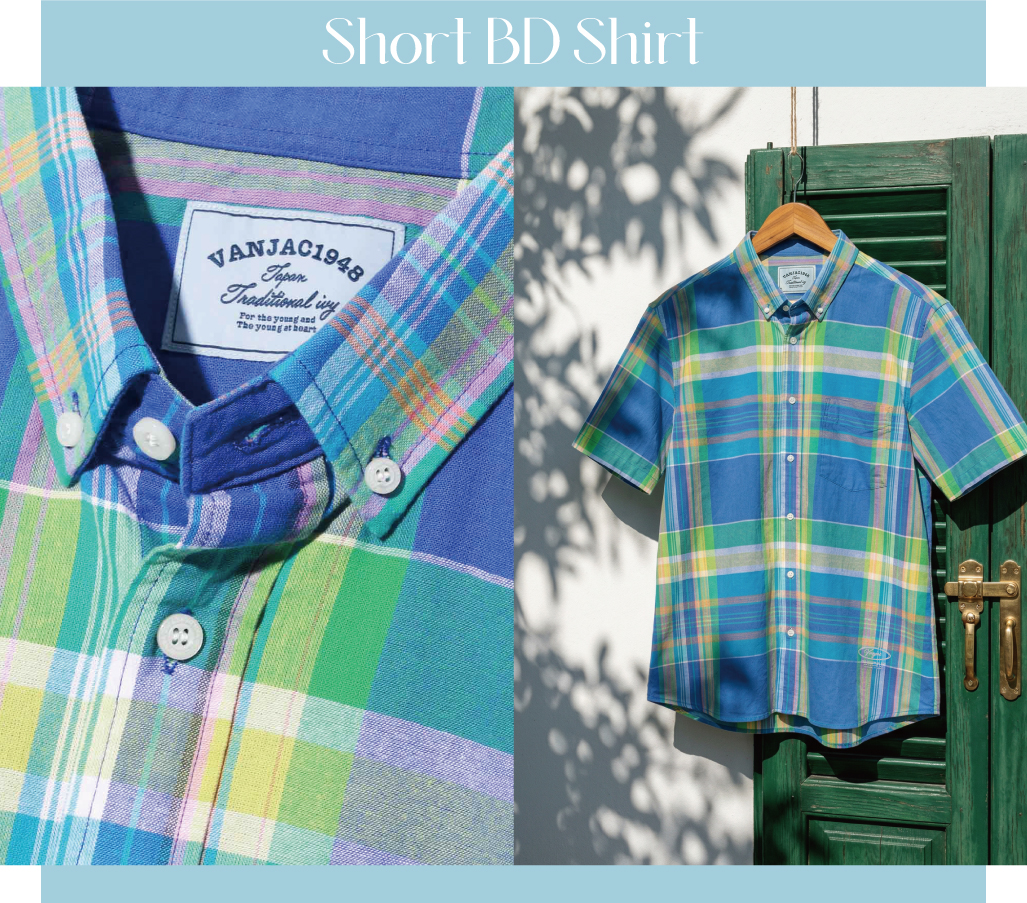 インド南東部・マドラス地方に端を発し、1950〜60年代にはアメリカ東海岸のアイビーリーガーたちの間で広く親しまれたマドラスチェック。その背景を受け継ぎながら、現代のスタイルに落とし込んだ一着です。素材には綿100%を使用し、吸湿性に優れたさらりと快適な肌ざわりを実現。衿先5.5cmのボタンダウンが、程よく品のある表情を演出します。ポケット生地をバイアス使いにすることで柄にさりげない変化を加え、視線を引くアクセントに。両胸のポケットは小物の収納に便利なだけでなく、デザインのポイントとしても存在感を発揮します。