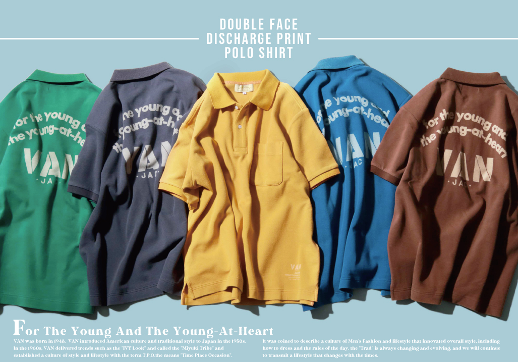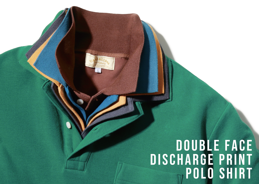 表裏の風合いが異なるダブルフェイス生地を使用した肌あたり柔らかなバックロゴポロシャツです。プリント部分は抜染プリントを採用し、柔らかな風合いを残しつつヴィンテージ感漂う”こなれたポロシャツ”に仕上げました。インナーにはもちろん、1枚で着てもサマになる大人のポロシャツです。