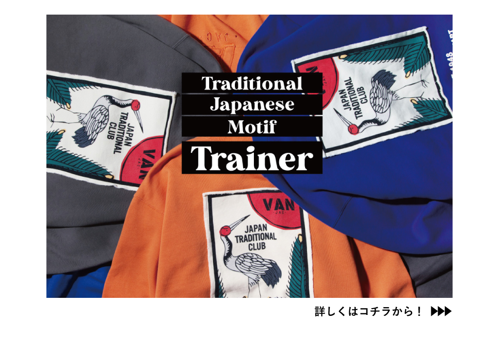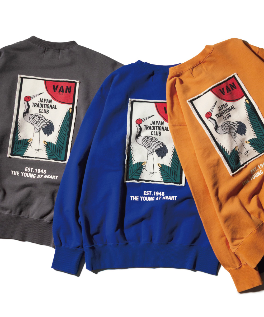 背中に配したのは、日本の伝統絵札「花札」の一月札、松に鶴。その静かな縁起を、VANらしいロゴワークと組み合わせ、日常のスタイルに自然に溶け込む一枚として仕上げています。